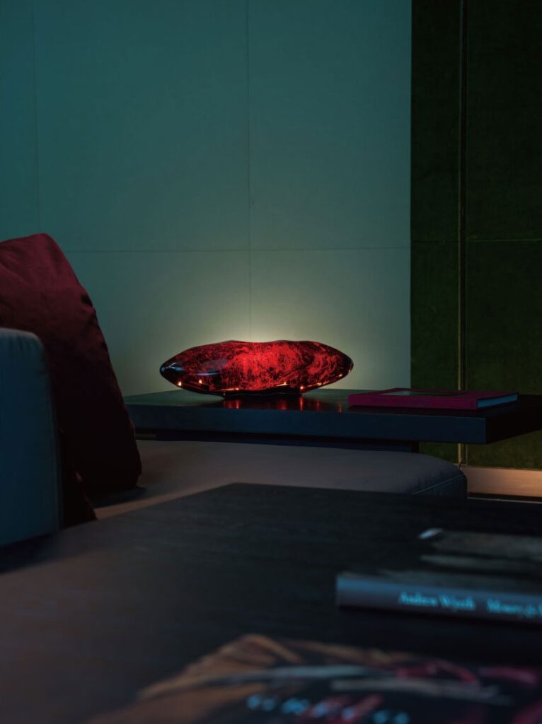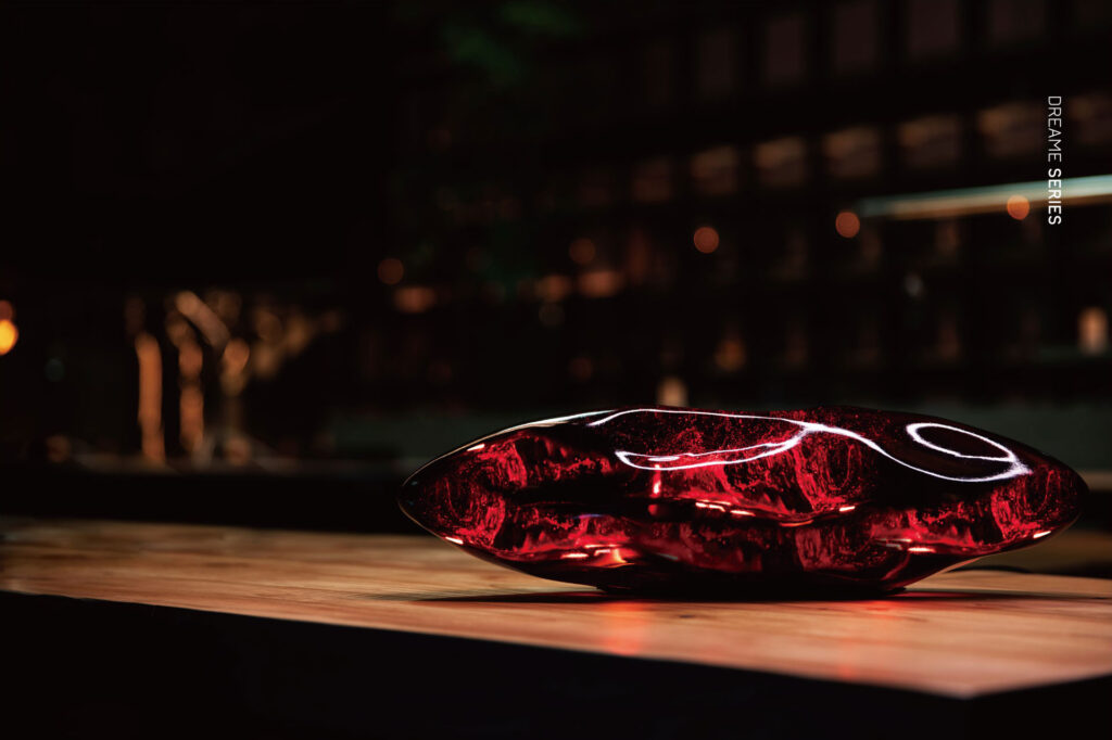 La lampada Dreame è realizzata utilizzando antiche tecniche di lavorazione del vetro provenienti dalla Cina. Il vetro spesso e pregiato si abbina perfettamente al fascio di luce concentrato e alla luce soffusa delle strisce LED, esaltando magnificamente le sfumature di colore e la texture unica della lampada.