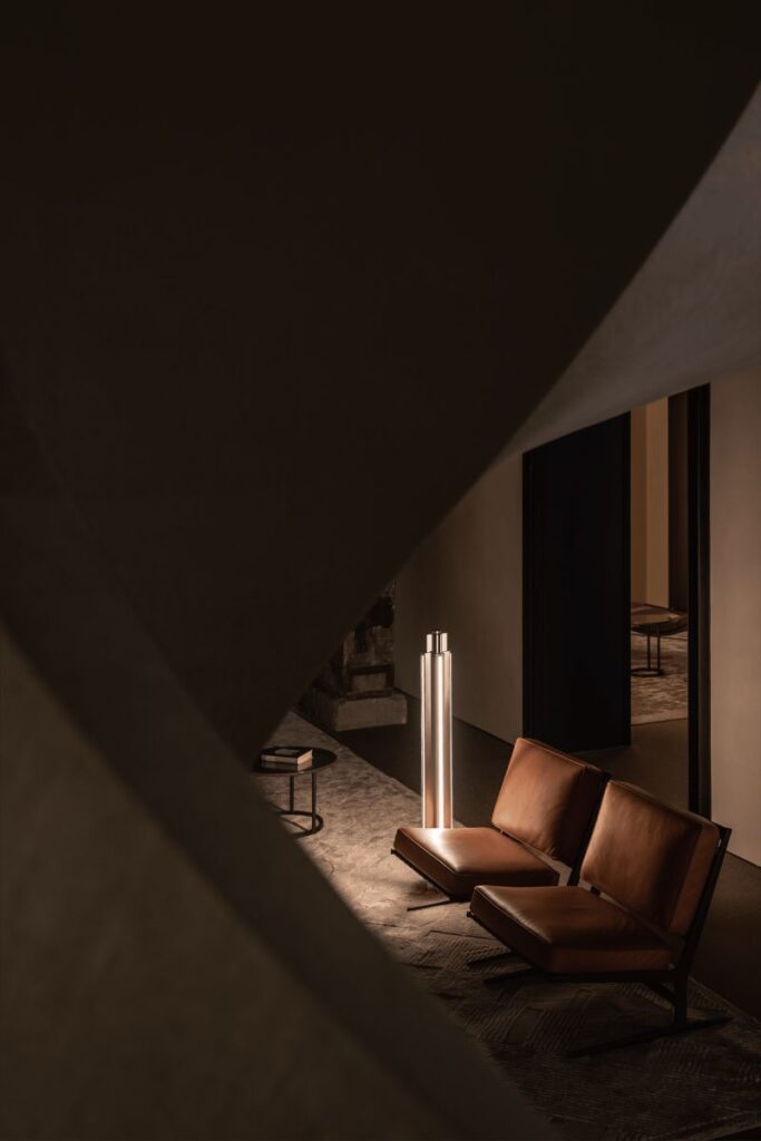 One of the most common uses of the X floor lamps is to place them in a corner, which can enhance the three dimensionality of the entire space and make the visual experience feel more expansive. The warm light in the corner also provides a greater sense of security.