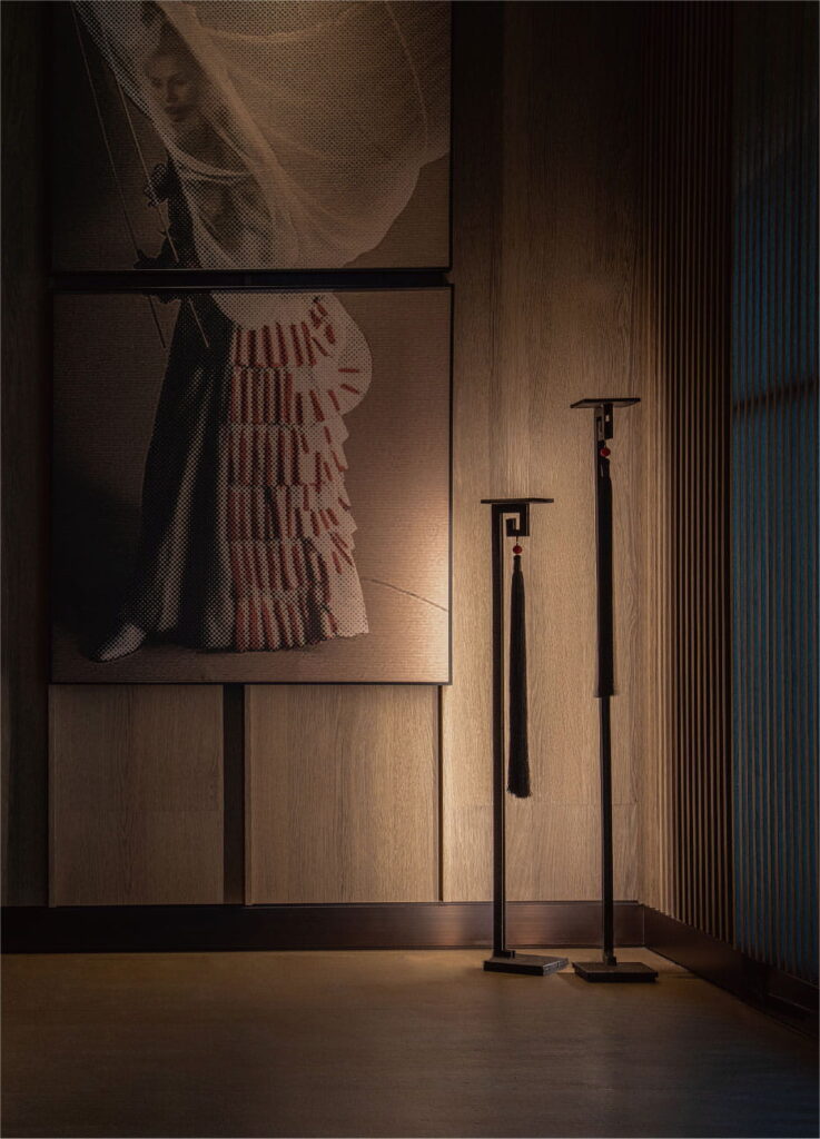 At night, the light strip behind the candle holders softly washes the wall, providing a gentle ambient light source. It also serves as an excellent mid-to-low level lighting solution in the evening.
