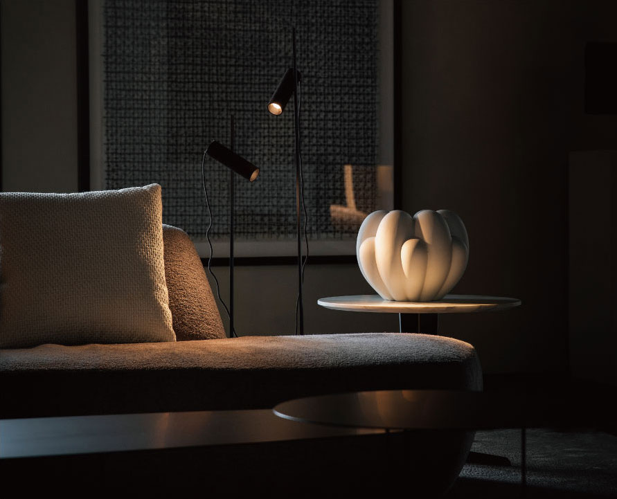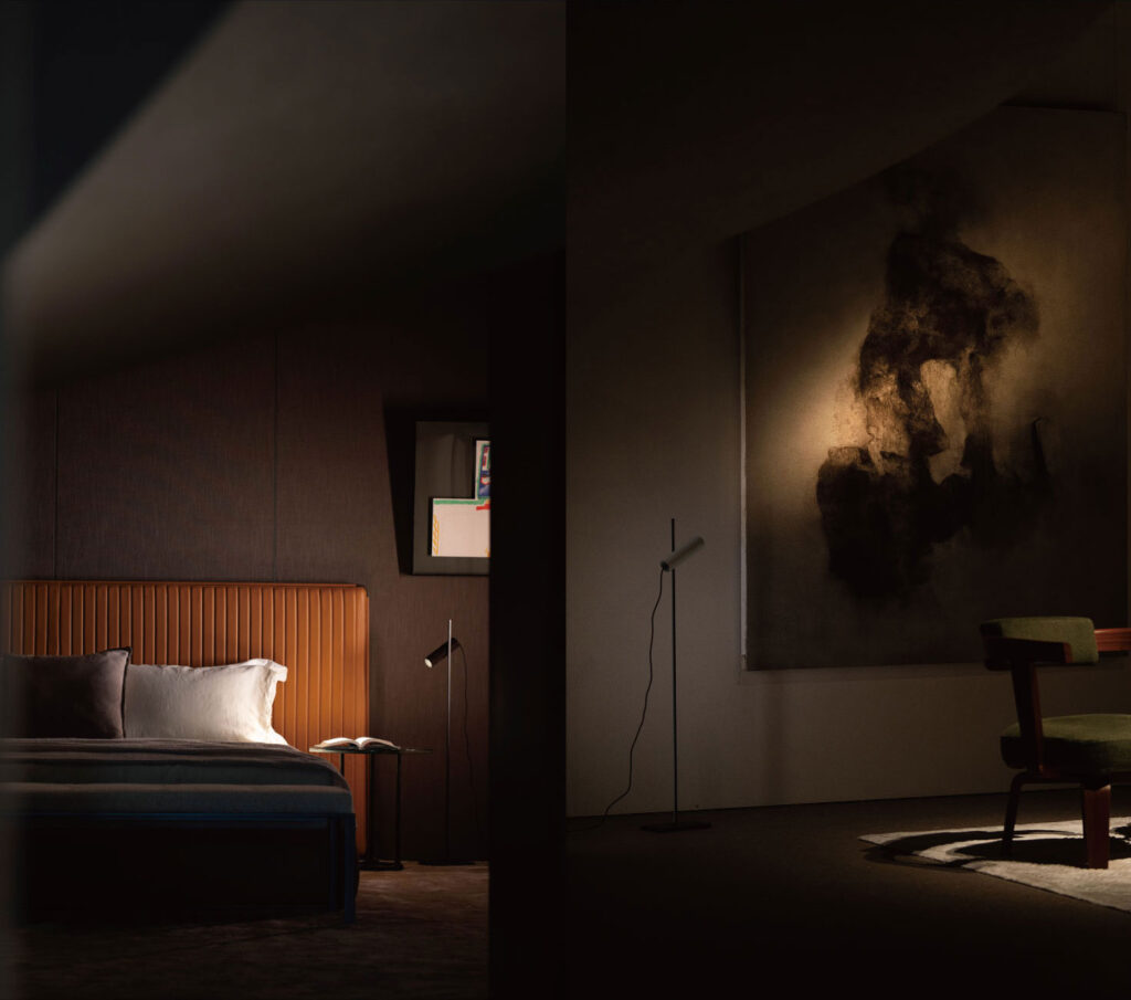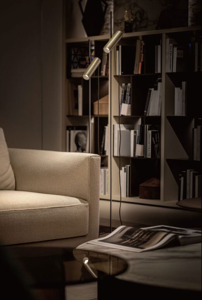 The metal shell, crafted using traditional casting techniques exudes a rich texture and timeless appeal. The minimalist design for the connection between the spotlight and the rod gives the lamp a clean and refined appearance.