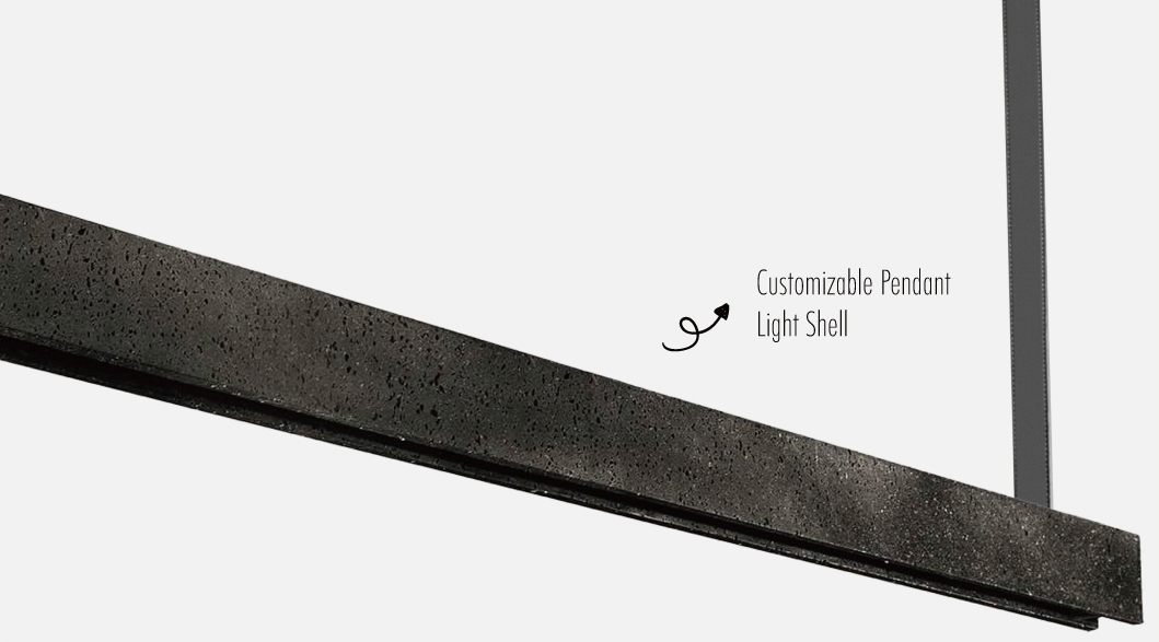 Homeowners can specify their preferred stone or other metal materials to customize the shell of this pendant light.