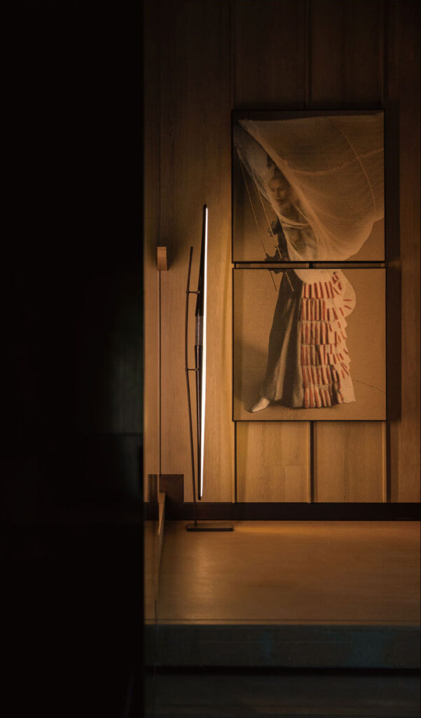 The ZHIZAI-1 Series Floor Lamp resembles an ancient curved bow exuding a strong sense of design. The bow handle is crafted from premium Thai pearl stingray leather.